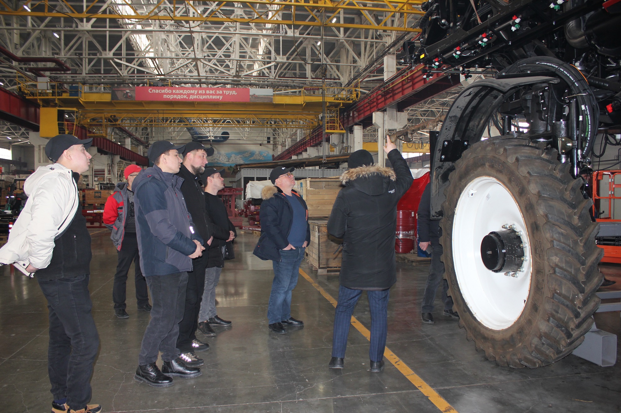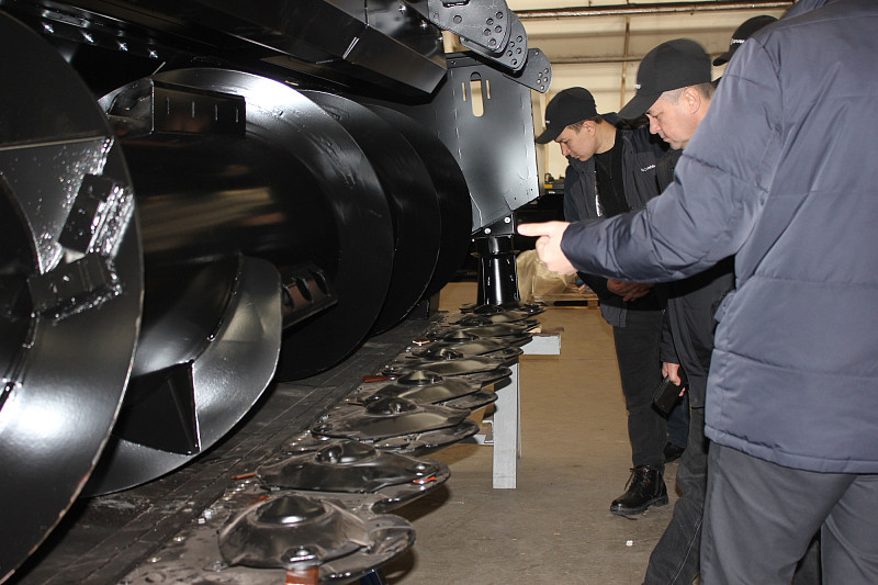 Аграрии посетили участки сборки кормоуборочной и почвообрабатывающей техники, ознакомились с моделями из линейки техники для защиты и питания растений, осмотрели опытный образец самоходного опрыскивателя.